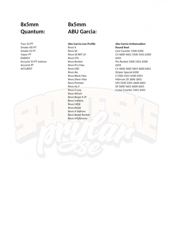 Line Counter 5500 6500, C3 4600 4601 5500 5501 6500 6501, Pro Rocket 5500 5501 6500 6501, C4 4600 5600 5601 6600 6601, Striper Special 6500, S 5500 5501 6500 6501, Mörrum ZX 3600 3601, STX 5500 5501 6600 6601, SX 5600 5601 6600 6601, S Line Counter 5501 6501